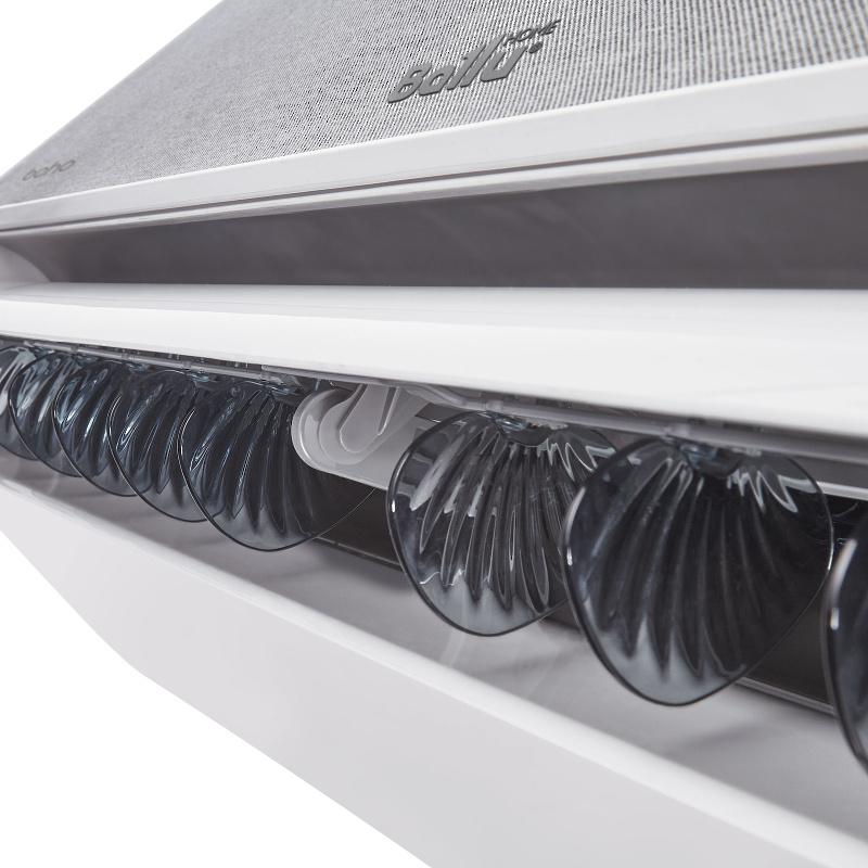 • Для максимального комфорта была разработана уникальная форма жалюзи на 180°, обеспечивающая равномерный поток воздуха вдоль потолка или пола.